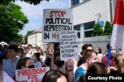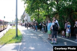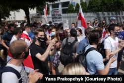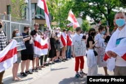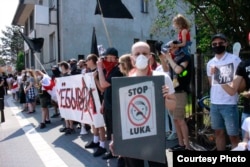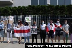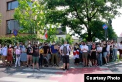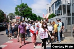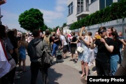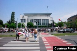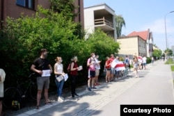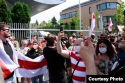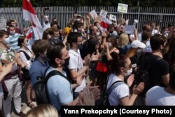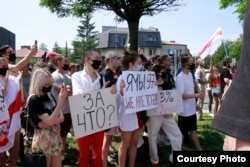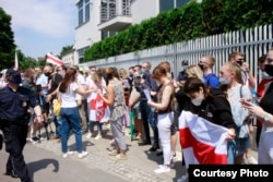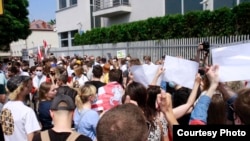 Сотні беларусаў каля амбасады Беларусі ў Варшаве патрабавалі вызваленьня палітвязьняў. ШМАТ ФОТА