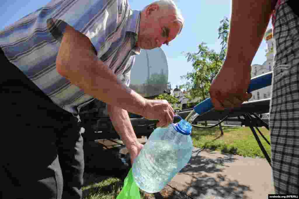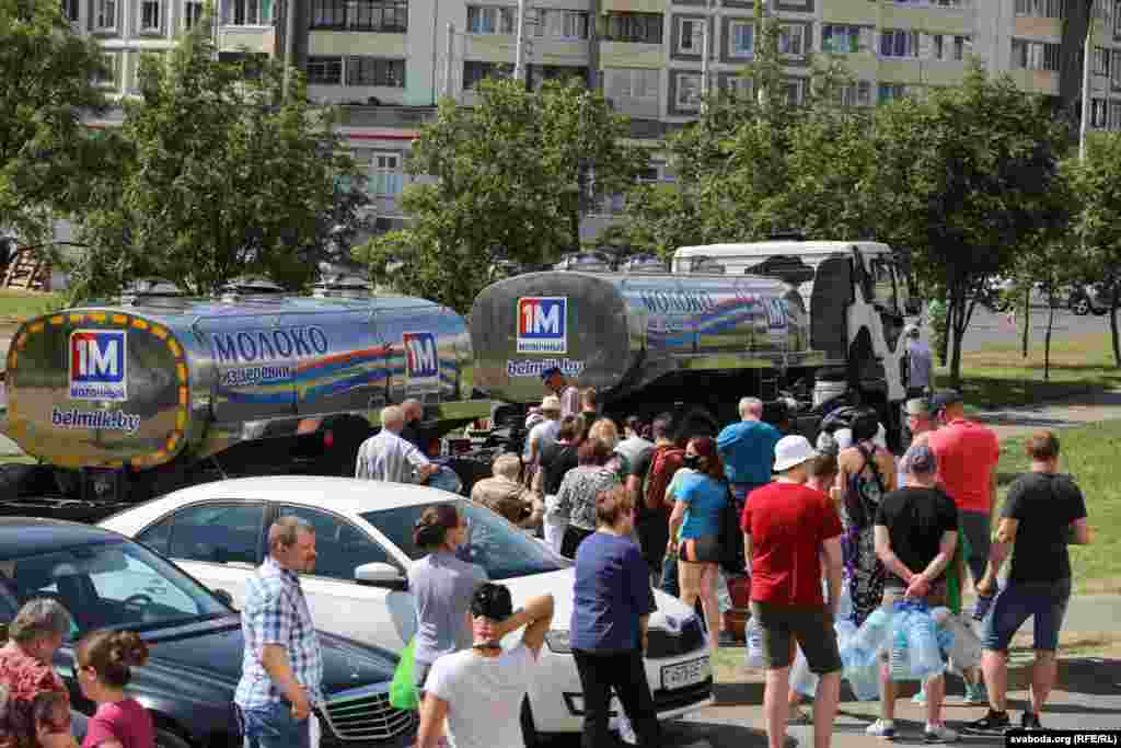 Другі дзень у Менску людзі стаяць у чэргах па ваду, якую падвозяць у розныя раёны цыстэрнамі. Праблемы зь пітной вадой у Менску пачаліся раніцай 24 чэрвеня: жыхары раёнаў, дзе ў кранах цячэ вада зь Вілейска-Менскай воднай сыстэмы, адчулі непрыемны пах, скардзіліся на непрыемныя адчуваньні на скуры, калі такой вадой памыцца.