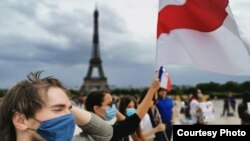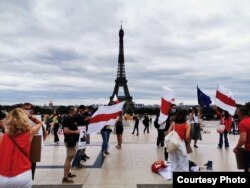 У Парыжы 27 чэрвеня адбылася акцыя ў падтрымку незалежных беларускіх журналістаў, якія цярпяць перасьлед з боку ўладаў падчас выбарчай кампаніі, беларускіх палітвязьняў і дэманстрантаў.