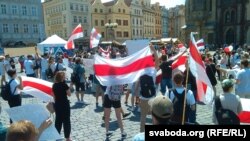 Уся Старамесцкая плошча ў Празе сёньня была беларускай. Сюды прыйшлі некалькі сотняў дэманстрантаў. Па-беларуску, па-чэску, па-ангельску яны патрабавалі свабоды палітвязьням, зьняволеным за салідарнасьць грамадзянам і блогерам Беларусі.