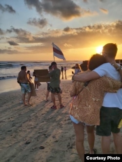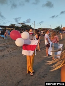 У Інданэзіі, на Балі, беларусы сабраліся на акцыю салідарнасьці на ўзьбярэжжы акіяну.