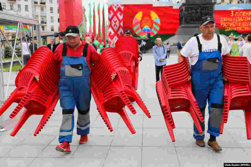 Фотакарэспандэнт Свабоды паназіраў за афіцыйным сьвяткаваньнем Дня незалежнасьці на плошчы Перамогі ў Менску.