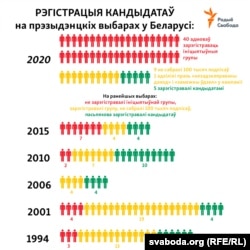 Нават на першых прэзыдэнцкіх выбарах у 1994 годзе — адзіных, якія краіны Эўразьвязу і Злучаныя Штаты прызналі дэмакратычнымі — былі прэтэндэнты, чые ініцыятыўныя групы не зарэгістравалі.