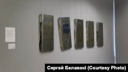 «Гэта мой страх выйсьці на плошчу». У Палацы мастацтваў прыбралі інсталяцыю зь міліцэйскіх шчытоў