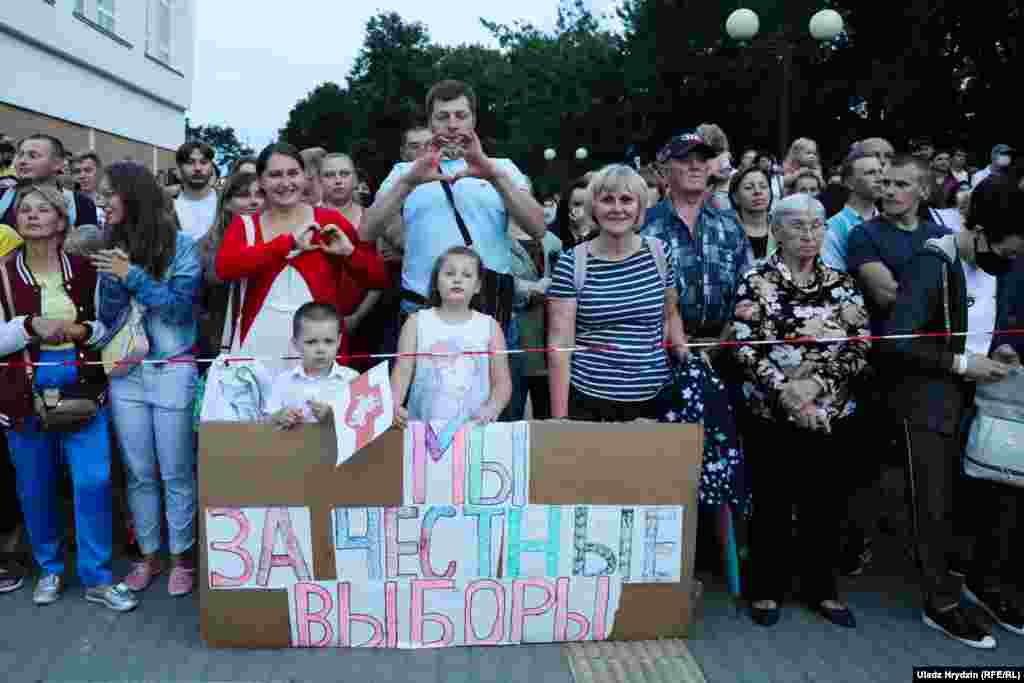 У Гомлі прайшоў агітацыйны пікет кандыдаткі на прэзыдэнта Сьвятланы Ціханоўскай, на які прыйшлі, як найменей,10 тысяч чалавек.