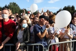 Кандыдатка ў прэзыдэнты Беларусі Сьвятлана Ціханоўская 30 ліпеня выступіла на мітынгу-канцэрце ў сваю падтрымку ў менскім парку Дружбы народаў.