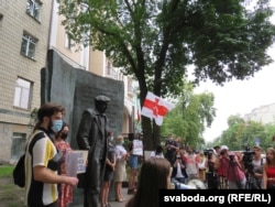 Акцыя завяршылася сьпевамі пад гітару каля помніка Ўладзімеру Караткевічу, што побач з амбасадай Беларусі ва Ўкраіне.