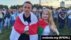 Ігара і Ларысу на мітынгу Сьвятланы Ціханоўскай, які прайшоў 30 ліпеня ў менскім парку Дружбы народаў, заўважылі сотні людзей. Ён накінуў на плечы нацыянальны бел-чырвона-белы сьцяг, яна была поруч, пад дзяржаўным чырвона-зялёным.