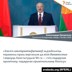 «Вярнуўшы Канстытуцыю 1994 году, мы вярнулі б безуладзьдзе», — кажа Лукашэнка. Ён нібыта забыў, што сам быў выбраны прэзыдэнтам паводле менавіта гэтай Канстытуцыі.
