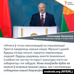 «Сымбалі ніхто не забароніць і не забудзе. Мова застанецца падмуркам нашай незалежнасьці», — заявіў Лукашэнка, апэлюючы да пачуцьцяў патрыятычнай часткі выбарнікаў. Пра якія сымбалі гаворка, ён не ўдакладніў, але фразу пра мову вымавіў па-беларуску.