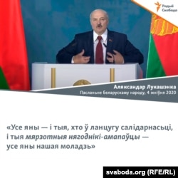 Усе, хто супраць Лукашэнкі — гэта людзі, якія страцілі сумленьне. То бок, нармальныя людзі проста ня могуць не падтрымліваць Лукашэнку. Відаць, ён сапраўды так думае.