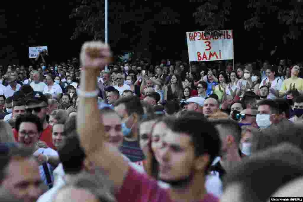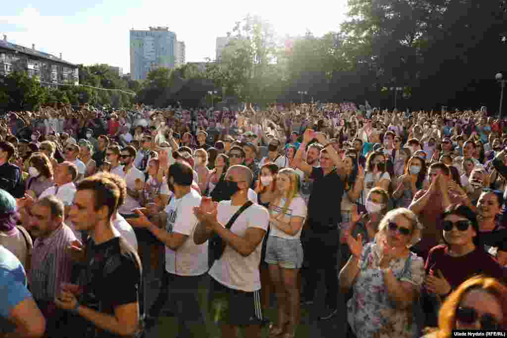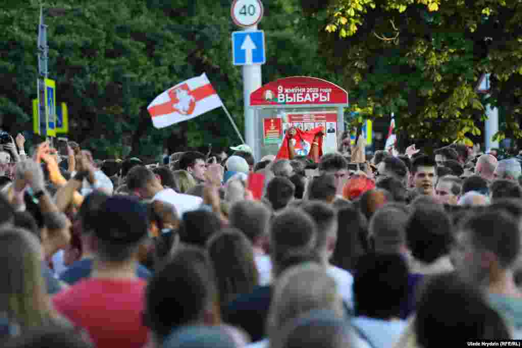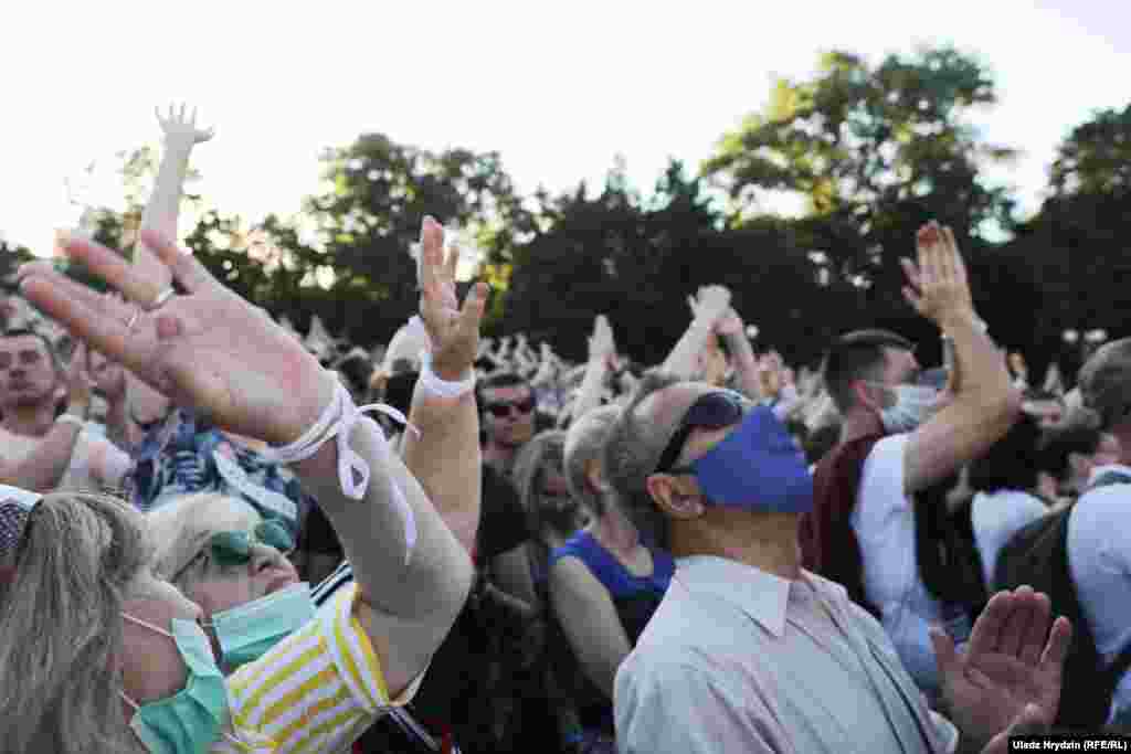 Як тысячы чалавек чакалі Ціханоўскую ў Кіеўскім сквэры. ШМАТ ФОТА
