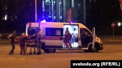 Сьведка затрыманьня раварыстаў у раёне Акадэміі навук расказаў Свабодзе, што аднаго з затрыманых забрала хуткая дапамога. Мэдыкам перадалі яго з аўтазаку.