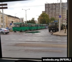 Вайсковыя машыны зьявіліся на плошчы Мясьнікова ў Менску днём 9 жніўня
