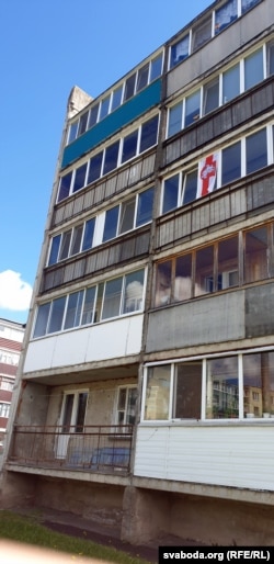 Камунальнікі зьдзёрлі бел-чырвона-белы сьцяг з балькона жыхара Горак. ФОТА
