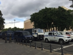 Каля цырку з абодвух бакоў, на скрыжаваньні з вуліцай Янкі Купалы, стаіць ачапленьне: 11 міліцыянтаў з аднаго боку і 9 — з другога боку вуліцы. Але людзей пакуль прапускаюць.