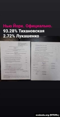 Афіцыйны пратакол з вынікамі галасаваньня ў Нью-Ёрку: 93,28% за Ціханоўскую