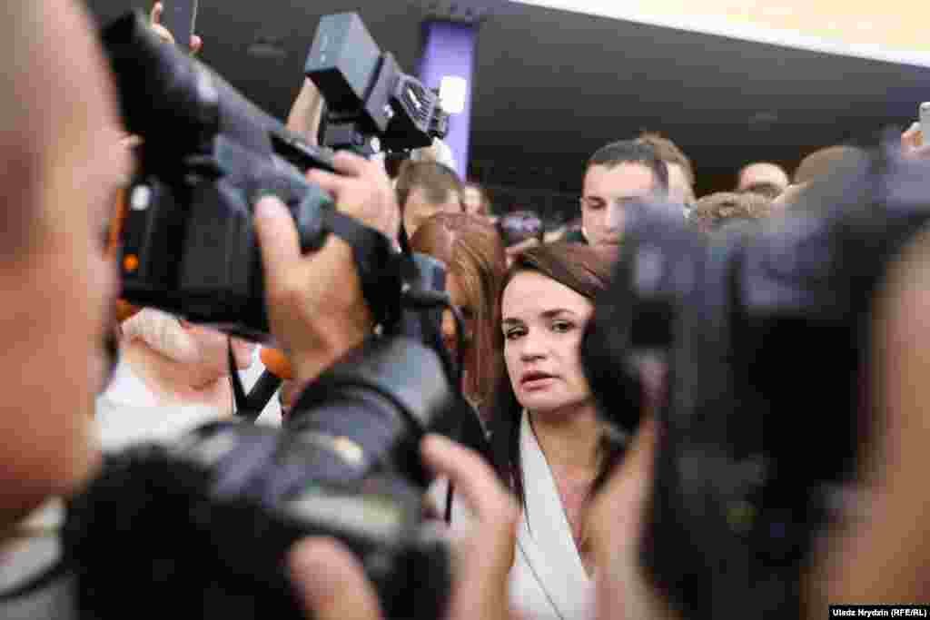 Кандыдатку ў прэзыдэнты Беларусі Сьвятлану Ціханоўскую сустрэлі на выбарчым участку воплескамі. Яна прыйшла галасаваць пасьля 14-й гадзіны на ўчастак для галасаваньня №21 у менскім мікрараёне Ўсход.