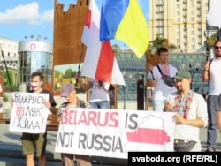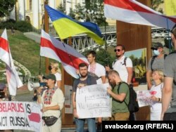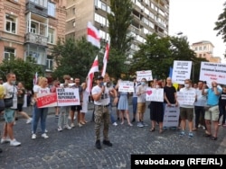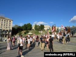 Беларускія і ўкраінскія актывісты сабраліся на майдане Незалежнасьці ў Кіеве, каб выказаць падтрымку беларусам, якія дэманструюць сваё жаданьне шляхам выбараў зьмяніць уладу.