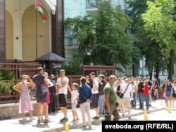 Каля амбасадаў Беларусі вялікія чэргі, людзі не пасьпяваюць прагаласаваць