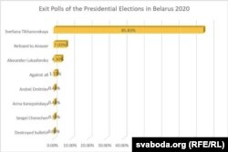 Абноўлены вынік экзыт-полу на замежных участках: больш за 85 працэнтаў за Ціханоўскую