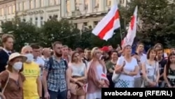 На плошчу людзі перамясьціліся ад будынку беларускай амбасады. Некалькі сотняў чалавек, прастаяўшы сёньня ў чарзе па некалькі гадзінаў, так і ня здолелі патрапіць у памяшканьне, каб прагаласаваць.