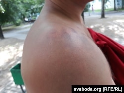 Ён памятае, што пакуль быў у прытомнасьці, яму нанесьлі 8-10 удараў, білі 5-6 амапаўцаў, а ён як мог укрываўся рукамі, ды ўрэшце страціў прытомнасьць.