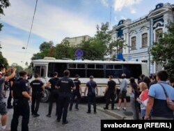 Пазьней каля амбасады затрымалі 5 асобаў. Сярод іх маглі быць і грамадзяне Беларусі. Іх вывезлі ў аўтобусе.