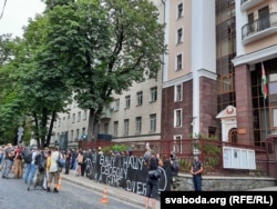 Амбасаду Беларусі ва Ўкраіне другі дзень ахоўваюць ва ўзмоцненым рэжыме — напярэдадні беларускія грамадзяне, якія не змаглі прагаласаваць, не разыходзіліся да позьняга вечара, а сёньня беларусы і ўкраінцы прыйшлі разам, каб патрабаваць спыніць гвалт і вызваліць усіх палітвязьняў.