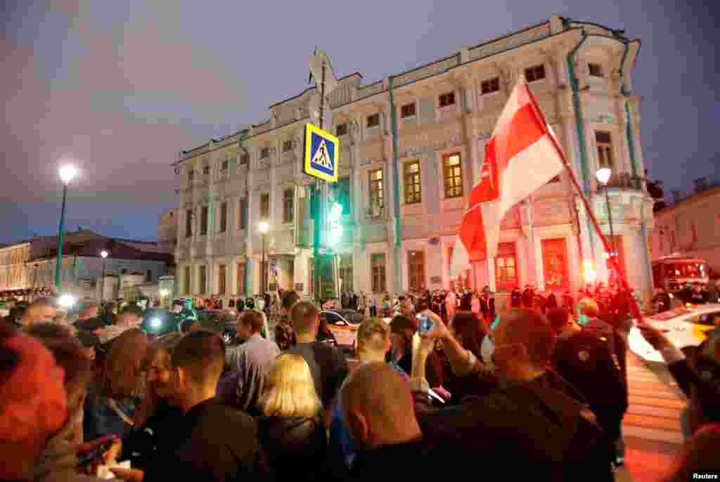 Акцыя салідарнасьці прайшла 11 жніўня насупраць беларускай амбасады ў Маскве. У ёй узялі ўдзел каля 200 чалавек. Актывісты выступілі з адзінкавымі пікетамі, усклалі кветкі і запалілі сьвечкі. Яны скандавалі лёзунгі ў падтрымку пратэстоўцаў у Беларусі і Сьвятланы Ціханоўскай, заклікалі Менск спыніць гвалт і перагледзець вынікі выбараў. Іх падтрымлівалі сыгналамі машыны, якія праяжджалі міма.