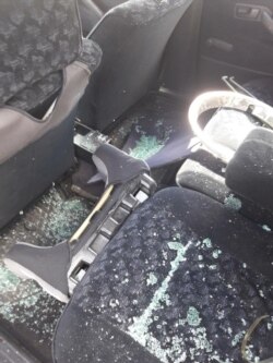 Раптам на таксі шкода рапід цёмнага колеру перад Уладзімерам выбеглі 5-6 чалавек у чорнай форме без пазнакаў і пачалі дручкамі біць вокны.