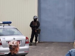 Аўтазакі ахоўваюць вайскоўцы са зброяй і амапаўцы. «Ганьба!», «Аддайце нашых дзяцей!», «Трое дзяцей сядзяць дома бяз бацькі!» — зьвяртаюцца да іх людзі.