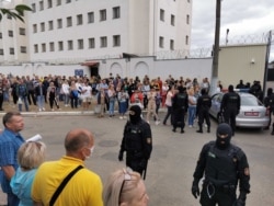 Людзі каля турмы на Акрэсьціна шукаюць тых, хто стаяў у чарзе на ўчастак, каб прагаласаваць, і быў затрыманы, назіральнікаў, а таксама ўдзельнікаў пратэстаў.