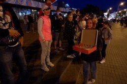 Людзі, якія стаялі ля цырку, вырашылі пайсьці на плошчу Леніна. Калі яны ішлі на плошчу, туды ж паехалі вайсковыя грузавікі. Людзі пайшлі назад, на пляцоўку каля цырку. Яны несьлі бел-чырвона-белы сьцяг на пачатку калёны і скандавалі: «Жыве Беларусь!».