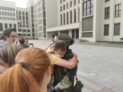 Ля дому ўраду дзяўчаты кінуліся адбымаць салдат унутраных войскаў