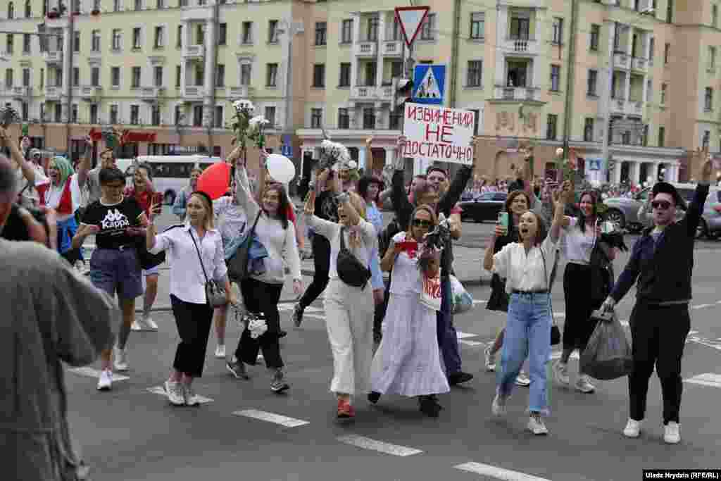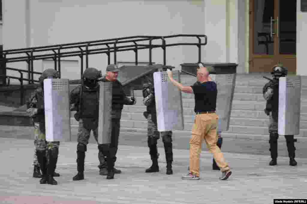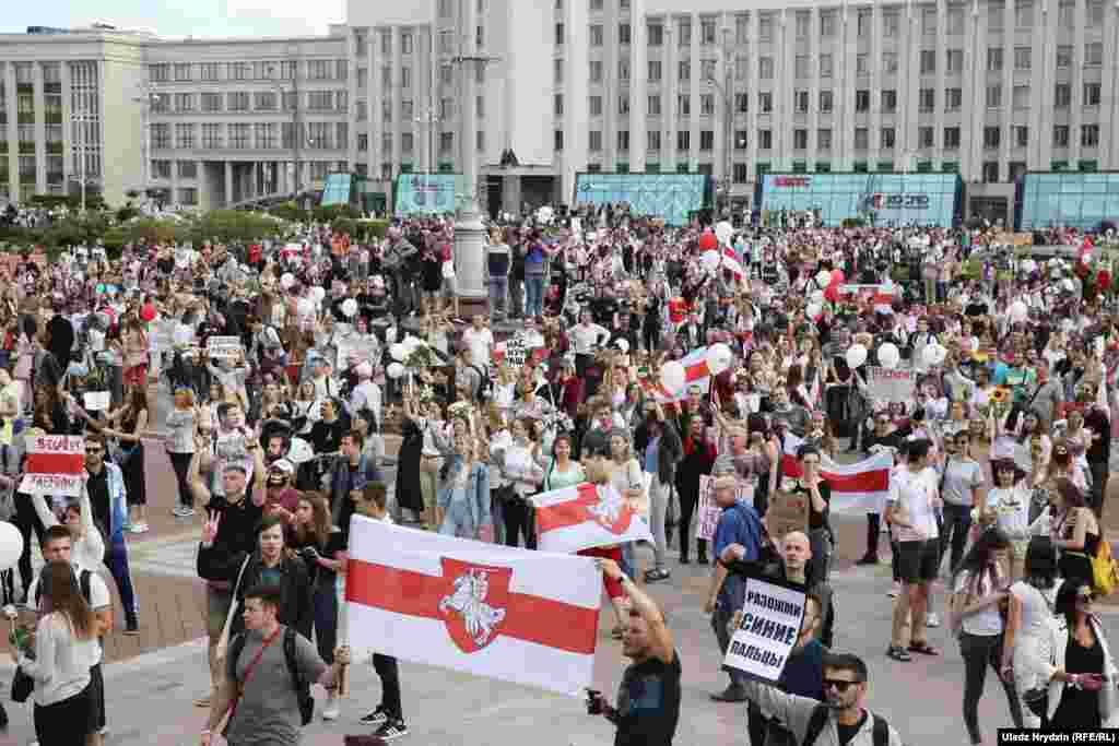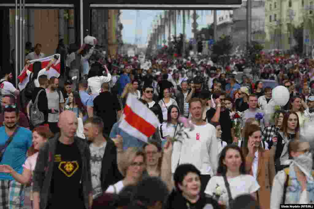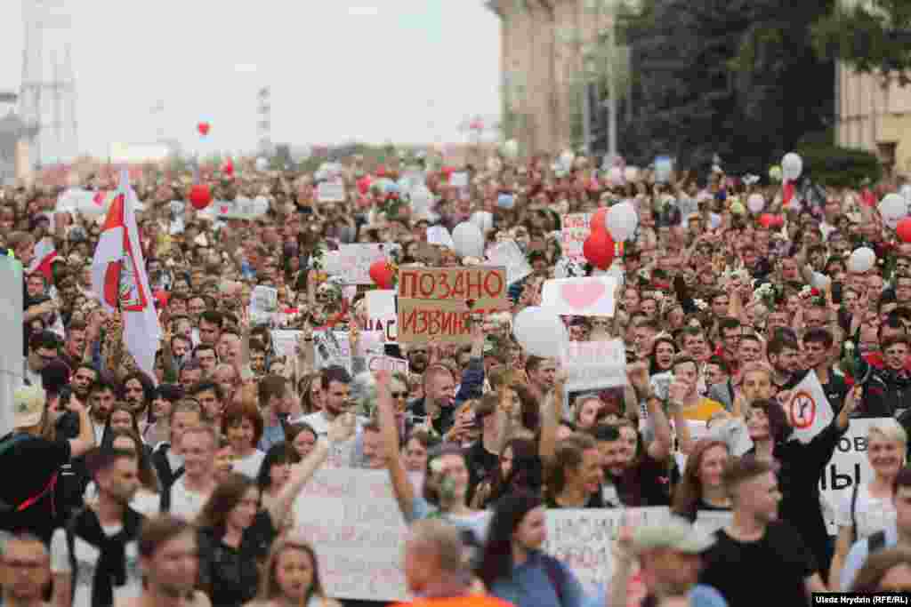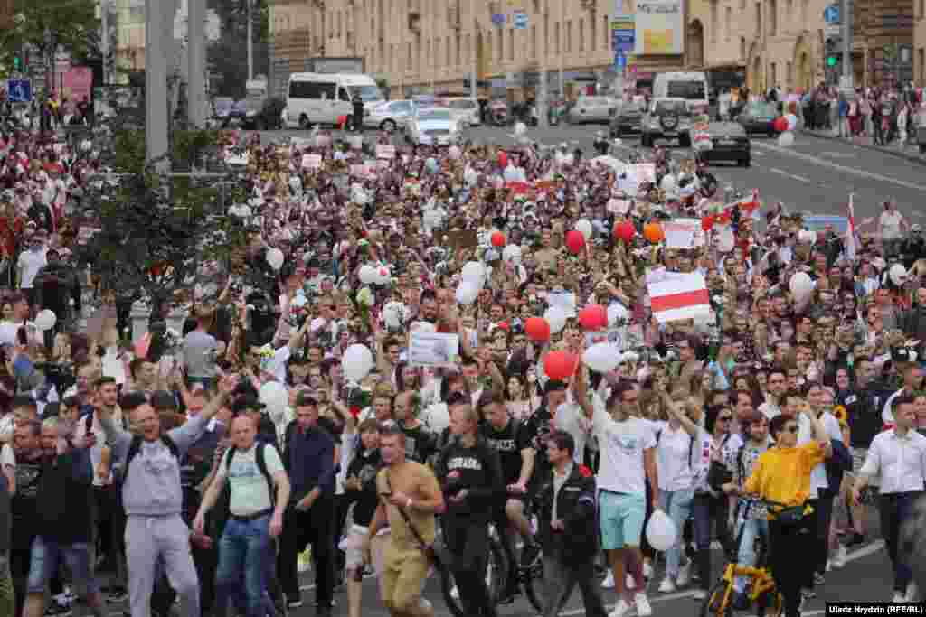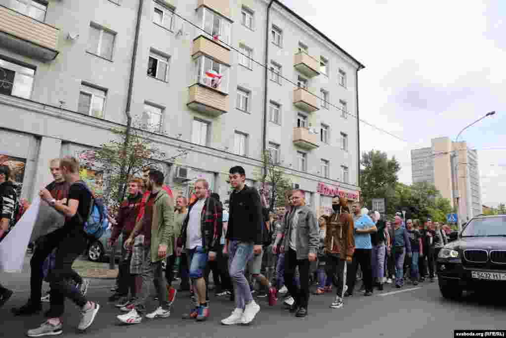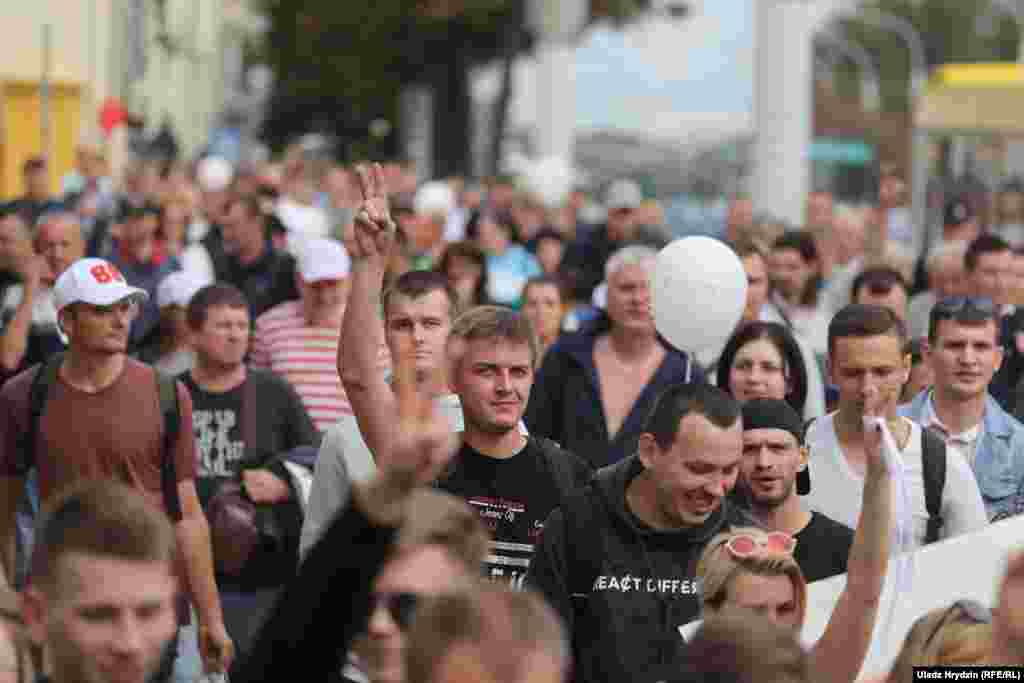 На пляцоўцы за прахадной Менскага трактарнага заводу (МТЗ) 14 жніўня адбыўся мітынг рабочых. На МТЗ прыехаў прэм’ер-міністар Раман Галоўчанка, але праігнараваў мітынгоўцаў на плошчы перад заводам і пайшоў да адміністрацыі МТЗ. Рабочыя пачалі марш да Дому ўраду. Вось як гэта было.