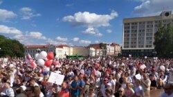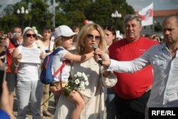 Горадзенская актывістка Алена Шаламіцкая заклікала людзей не сыходзіць з плошчы, пакуль ня выпусьцяць усіх зьняволеных за мірныя акцыі і палітзьняволеных.