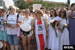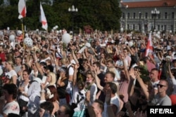 Людзі патрабуюць вызваленьня ўсіх зьняволеных і правядзеньня новых сумленных выбараў без Аляксандра Лукашэнкі.