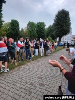 Там былі працаўнікі МТЗ, якія напярэдадні напісалі заявы на адпачынкі за свой кошт, а сёньня не змаглі трапіць на тэрыторыю прадпрыемства з прычыны заблякаваных пропускаў.