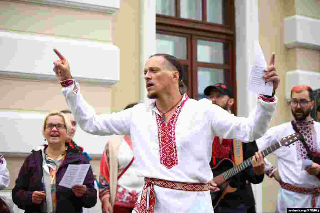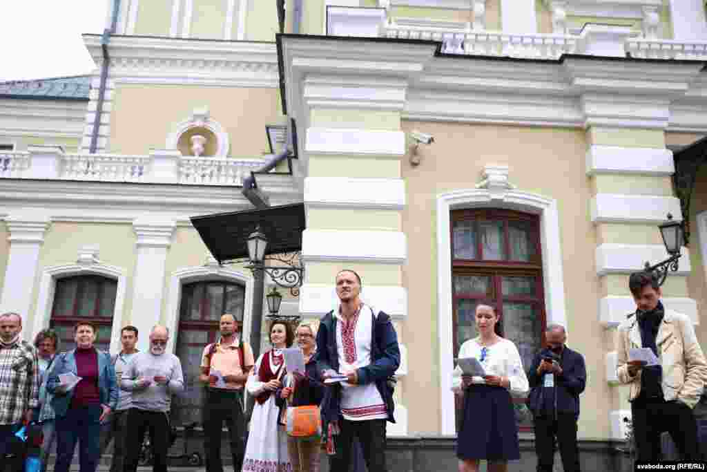 Каля Купалаўскага тэатру сьпявалі на знак салідарнасьці. Фотарэпартаж