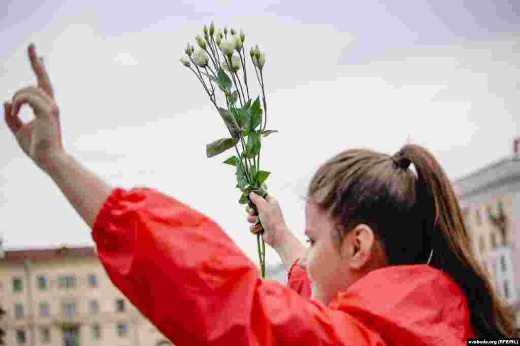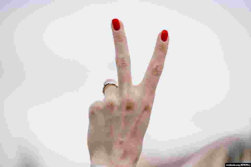 Людзі сталі ў «ланцуг салідарнасьці» на плошчы Перамогі ў Менску. Фотарэпартаж