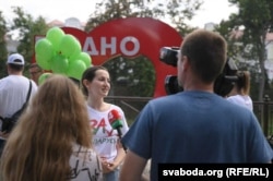 «Можна я вас здыму са сьцяжком?», — падбегла да аднаго з удзельнікаў акцыі маладая журналістка зь дзяржаўнага выданьня.