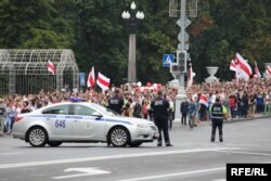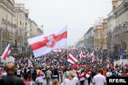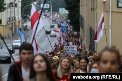 А 14 гадзіне ля Дому ўраду ў Менску пачалася чарговая акцыя прыхільнікаў пераменаў у Беларусі, якія выступаюць за спыненьне гвалту з боку сілавікоў, вызваленьне палітвязьняў і новыя прэзыдэнцкія выбары. Акцыя атрымала назву «Марш новай Беларусі».