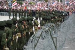17.35 Людзі ля Стэлы стварылі на мяжы натоўпу ланцуг, яны счапіліся рукамі, каб празь яго ніхто ня мог прарвацца бліжэй да шэрагаў вайскоўцаў, да якіх застаецца 30 мэтраў дарогі. Людзі скандуюць вайскоўцам: «Вы давалі прысягу народу!» Вайскоўцы з аўтаматамі, у бронекамізэльках і касках стаяць у шэрагах бяз руху, перадае карэспандэнт Свабоды.
