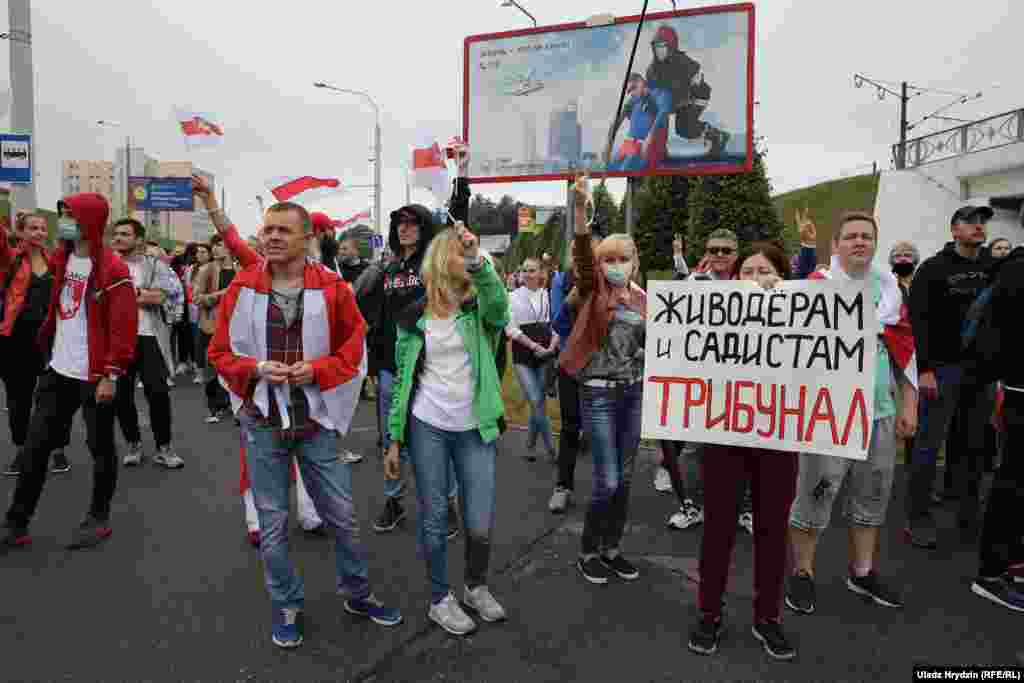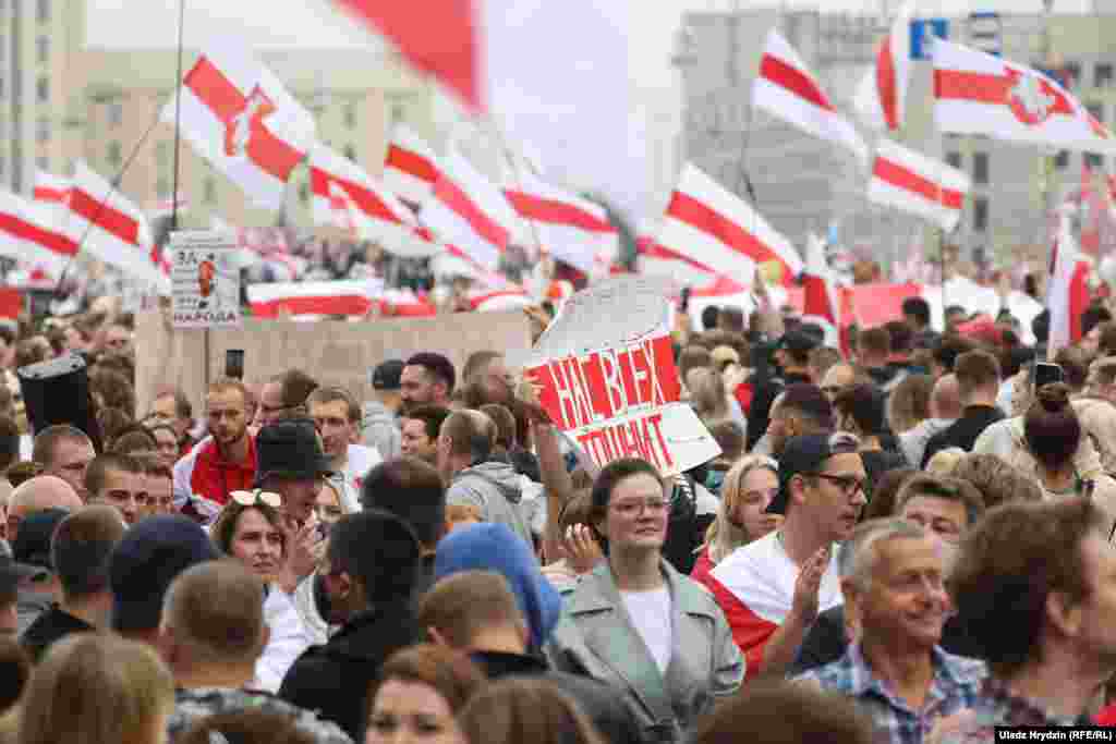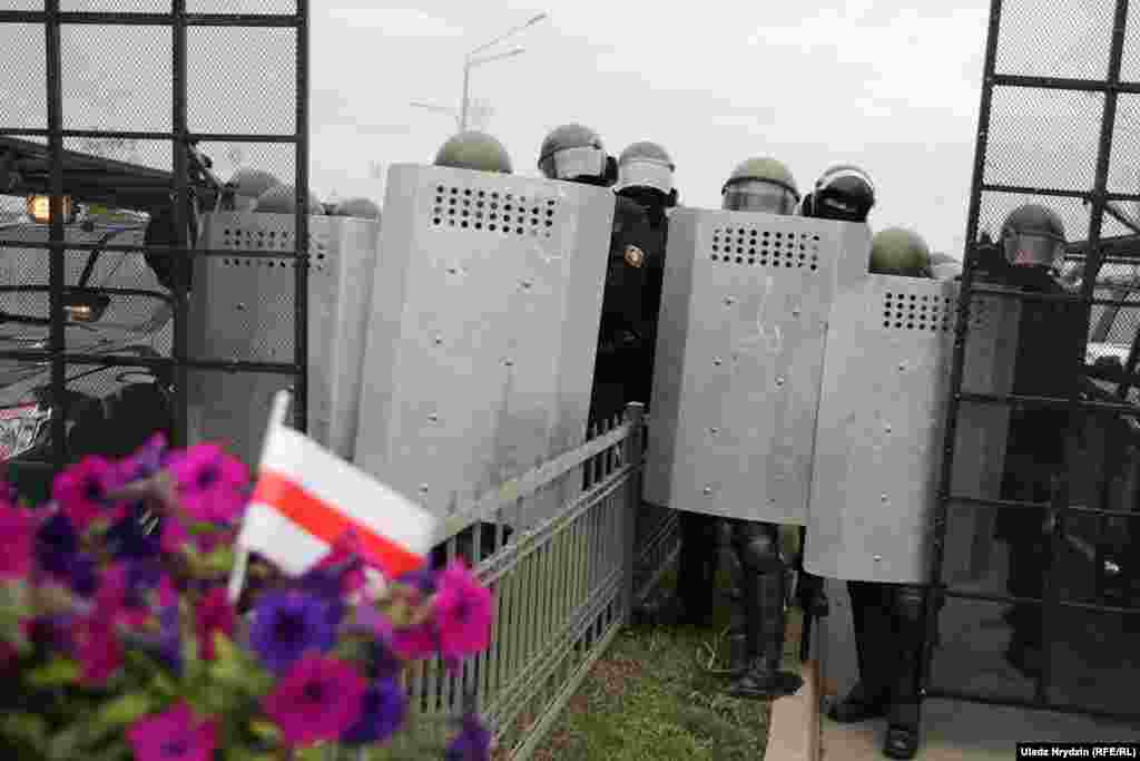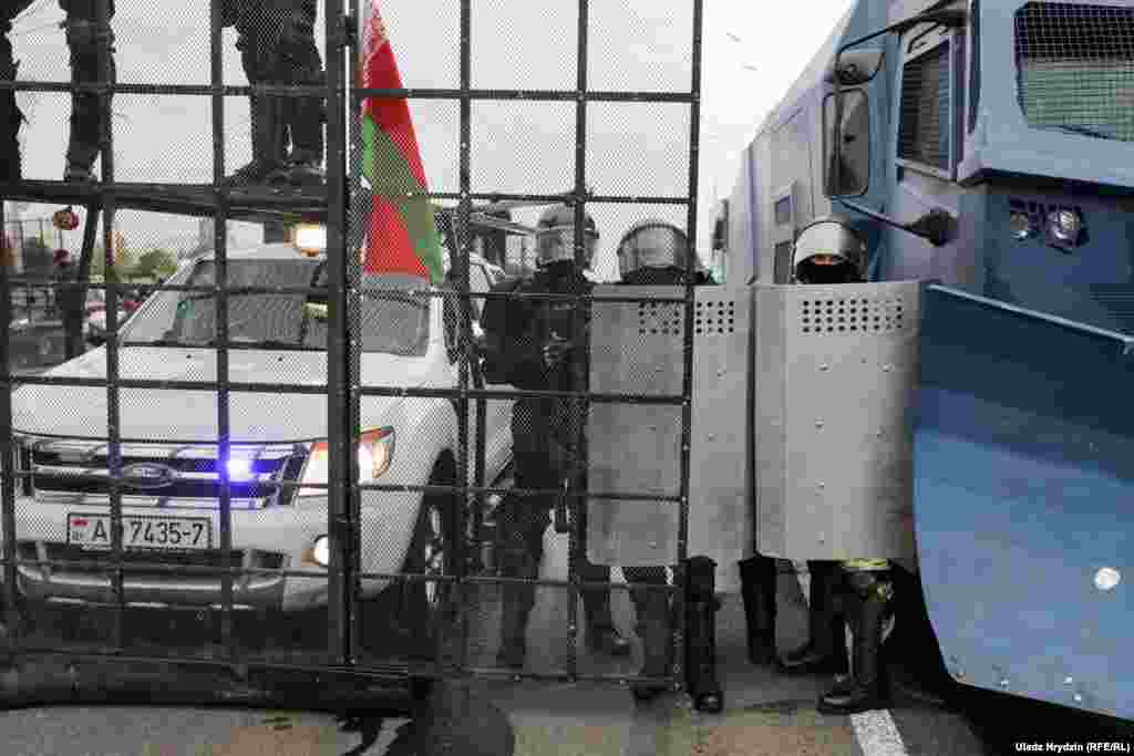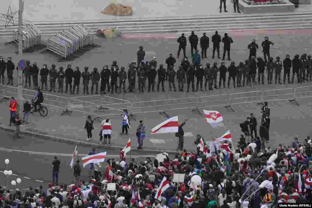 Частка людзей прыйшла ад Стэлы да Палацу Незалежнасьці, рэзыдэнцыі Аляксандра Лукашэнкі. Сюды яшчэ раней падагналі АМАП, вадамёты і іншую спэцтэхніку
