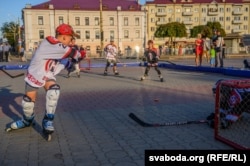 На палац тэкстыльнікаў, што на Савецкай плошчы, удзень павесілі чырвона-зялёны сьцяг. Пляцоўку побач з палацам агарадзілі. Там ладзілі спартовае сьвята, каб запісаць дзяцей у спартовую сэкцыю. Сабралася каля 200 чалавек. Арганізатары прадставілі 30 відаў спорту, сярод іх баскетбол, хакей, тэніс, фэхтаваньне, скачкі з парашутам, гольф. Бацькі маглі запісаць дзяцей на любы кірунак у спартовыя школы і клюбы, дзеці спрабавалі сябе на розных пляцоўках