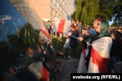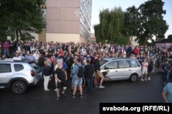Людзі скандавалі «Свабоду», «Выпускай», «Жыве Беларусь». Насупраць гарадзенцаў стаялі аўтазак зь міліцыянтамі, міліцэйскія мікрааўтобусы.