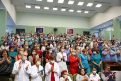 Выканаўцу міністра здароўя супрацоўнікі РНПЦ «Кардыялёгія» сустрэлі воклічам «Жыве Беларусь!»