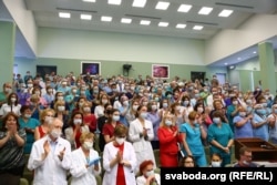 Лекары аплядавалі і выгукалі «Мрочак! Браво!», незадаволеным гулам сустракалі Піневіча, — перадае карэспандэнт Свабоды.