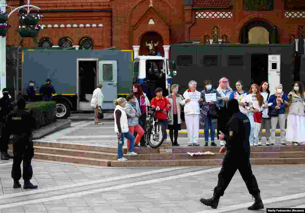 28 жніўня на плошчы Незалежнасьці ў Менску зноў сабраліся пратэстоўцы. На пляцоўцы перад Чырвоным касьцёлам дзяўчаты ў белым сталі ў «ланцуг салідарнасьці». Хутка на плошчы зьявіліся аўтазакі і АМАП.